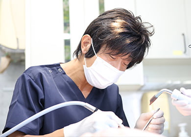 これまでの幅広い経験を、地域に身近な場所で生かしたいと考え開業しました。以前から歯科クリニックとして使われていた場所で、歯科衛生士は従来からのスタッフが引き続き予防歯科を担当しています。